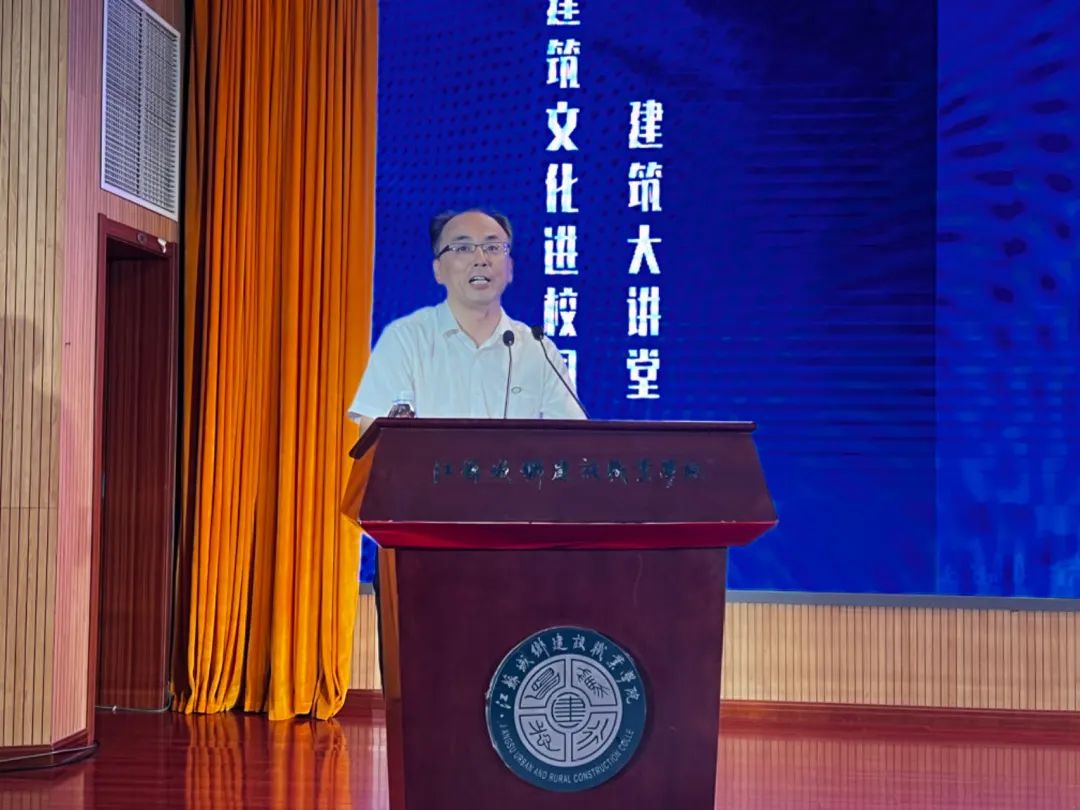 江苏省住房和城乡建设厅副厅长金文发表讲话,肯定了“建筑文化进校园行动”的重要意义,活动提供了丰富多彩的建筑文化载体和平台,重点介绍了江苏省在持续推动建筑文化传承与发展工作中的有力举措与取得成果,她希望同学们珍惜机会、积极行动,做建筑文化的守护者、传承者,不断增强文化自觉和文化自信,勇于担当时代赋予的历史责任,成为具有更高审美素养、创新意识和实践能力的社会人才,共同书写中国式现代化江苏城乡建设新篇章,共同讲好当代城乡建设的江苏人居新故事。